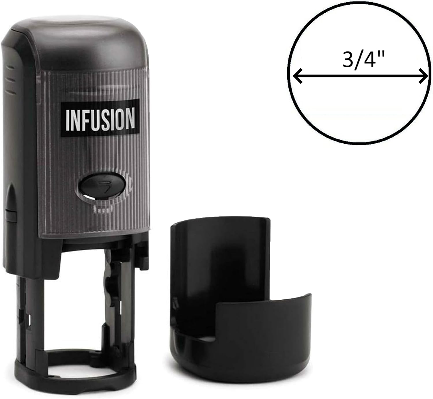 Infusion Custom Text Round Self-Inking Rubber Stamp (3/4" Diameter) - 1 Line of Text with Initial Line and Border