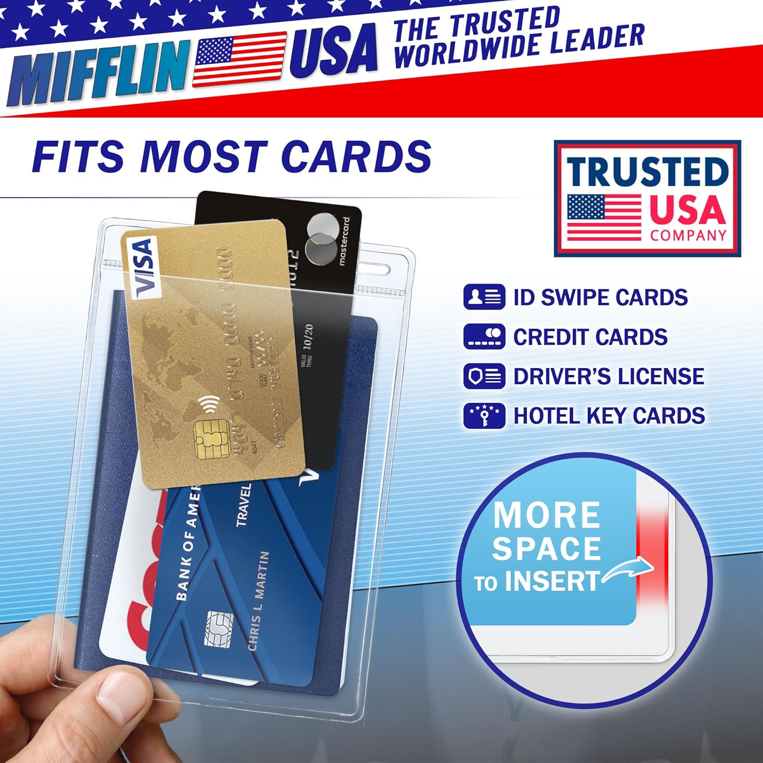 ifflin-USA Passport & Card Holders (Clear, 4x6 Inches, 10 Pack), Extra Large ID Name Badge Holder, Zipperless Vertical Plastic Card Holders