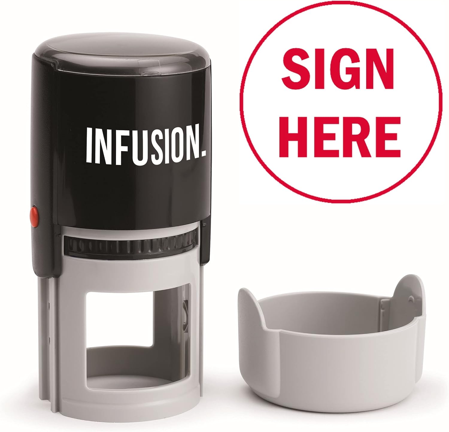 Infusion Custom Text Round Self-Inking Rubber Stamp (2" Diameter) - Up to 2 Lines with Circle Border