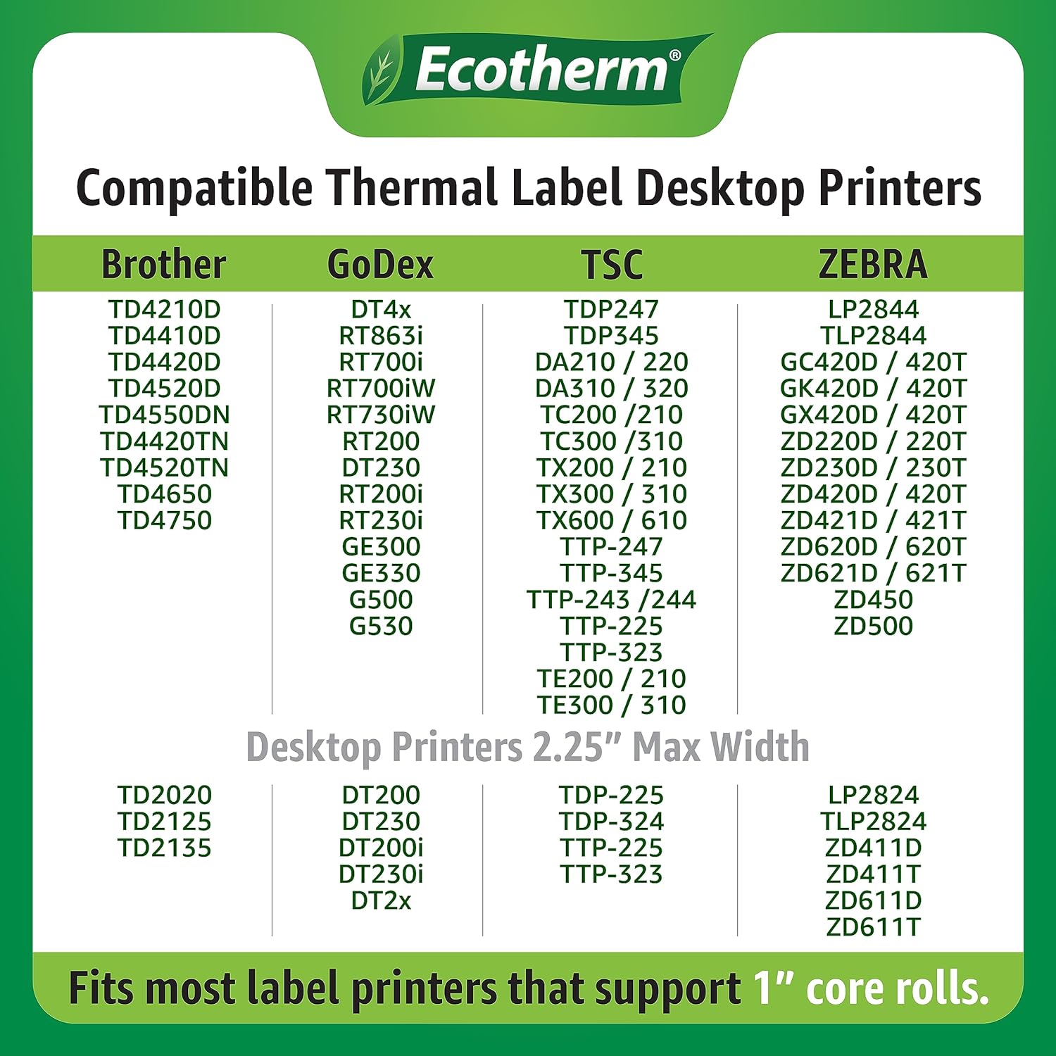 - Compatible with Zebra Printers: ZD220, ZD410, ZD411, ZD421, ZD620, ZD621, GC420, GK420, GX430, LP2824, LP2844, ZP500.