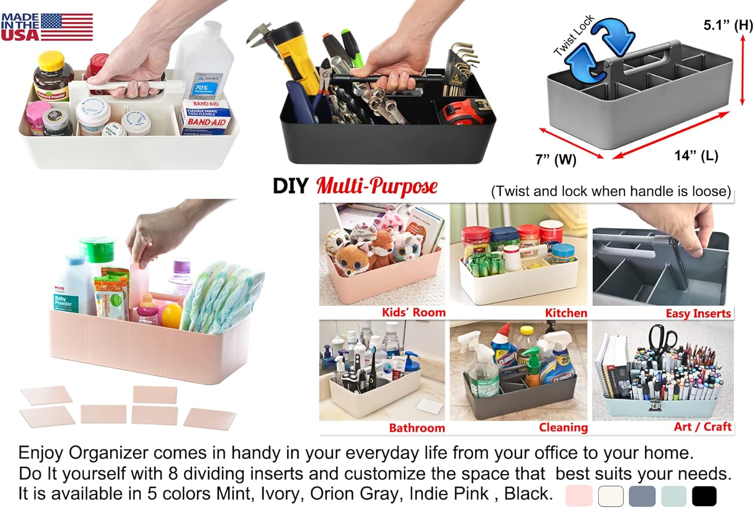 -Large Portable Caddy, DIY Dividers, 8 Compartments, School Office Supplies Home Business Organizer,Portable Basket with Handle Made in USA (4 PACK, Royal Purple)