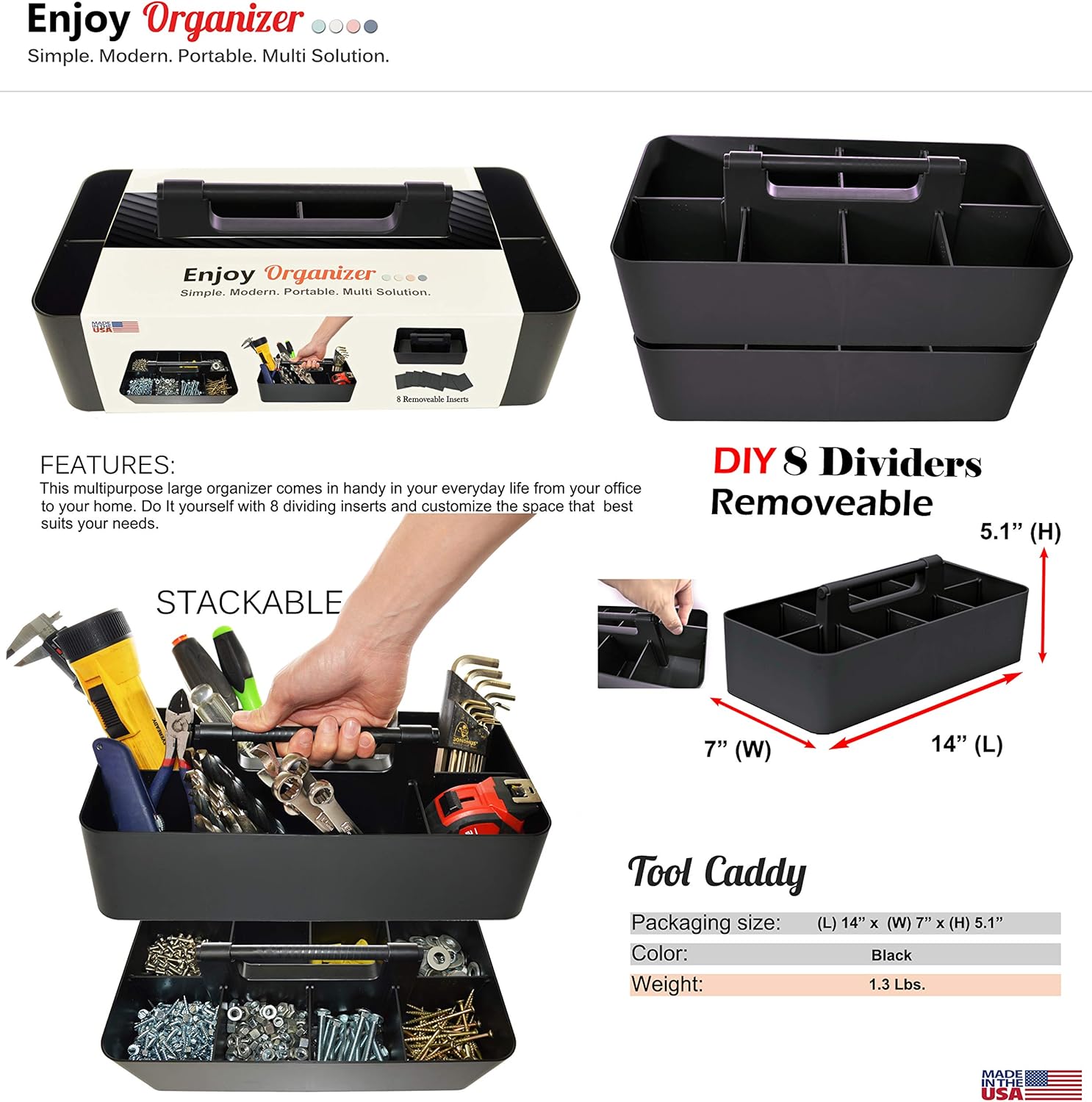 - EXTRA LARGE SIZED: Each Measures 14" x 7" x 5.1" high, Easy to clean with water and soap. 4 PACK -Black Enjoy Organizer.