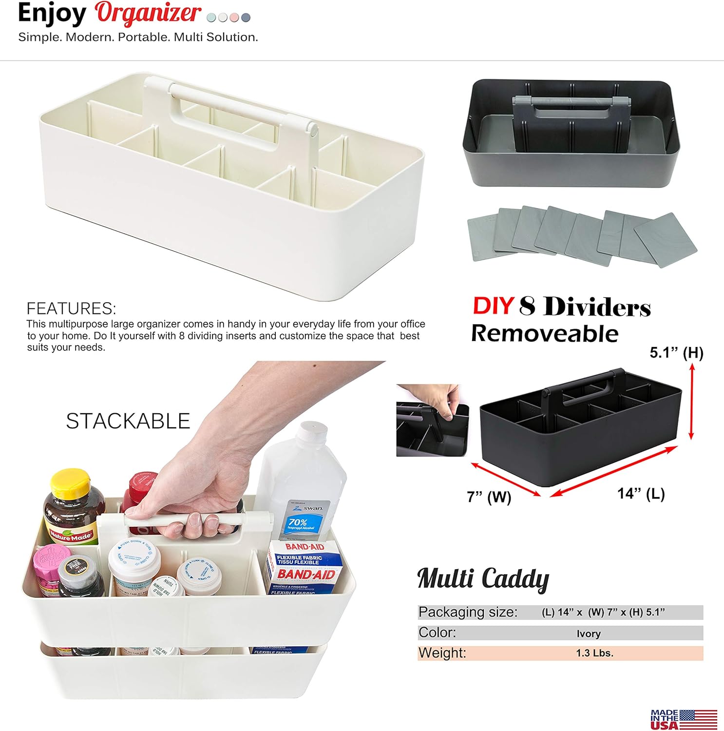-Large Portable Caddy, DIY Dividers, 8 Compartments, Bathroom Organizer,Portable Basket with Handle Storage Organizer Modern Made in USA (3 PACK, Ivory)