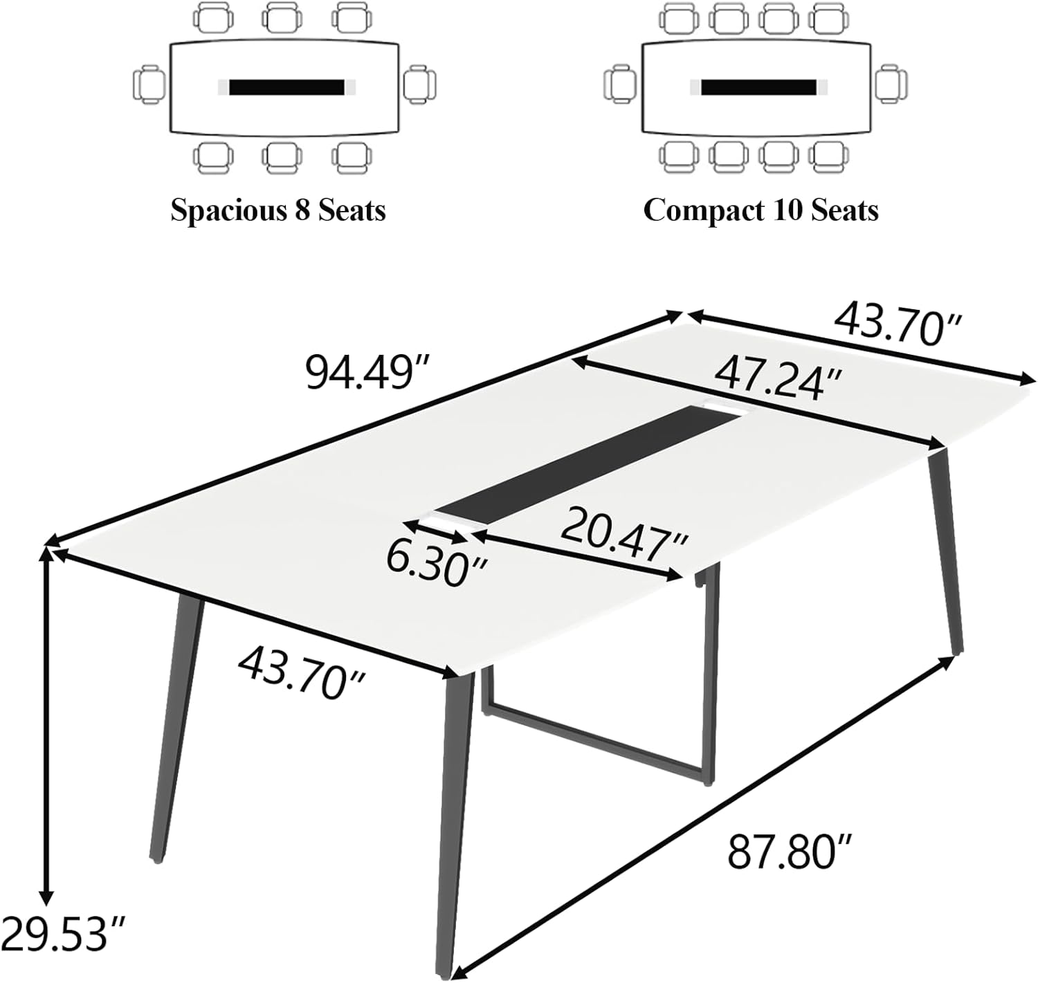 Loomie 8FT Conference Table, 94.49" L x 47.24" W x 29.53" H Meeting Seminar Table with Grommet, Large Boat Shaped Computer Desk, Boardroom Desk for Office Meeting Conference Room,White