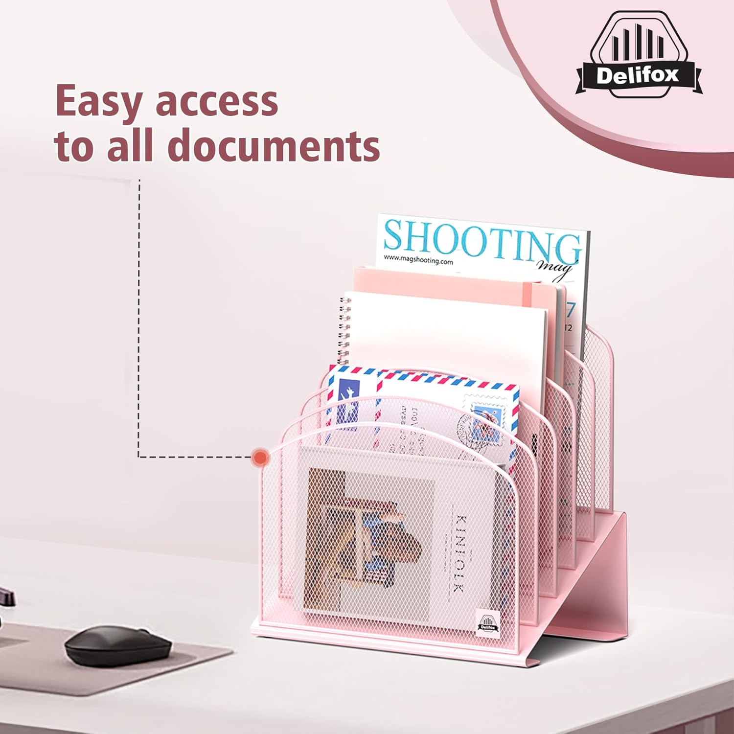 - ▶ SUFFICIENT SPACE FOR STORAGE. Delifox 5-compartment desktop file organizer is large enough to hold and classify many document or papers so as to eliminate worry of document run-off and keep track of files, folders, and other important papers