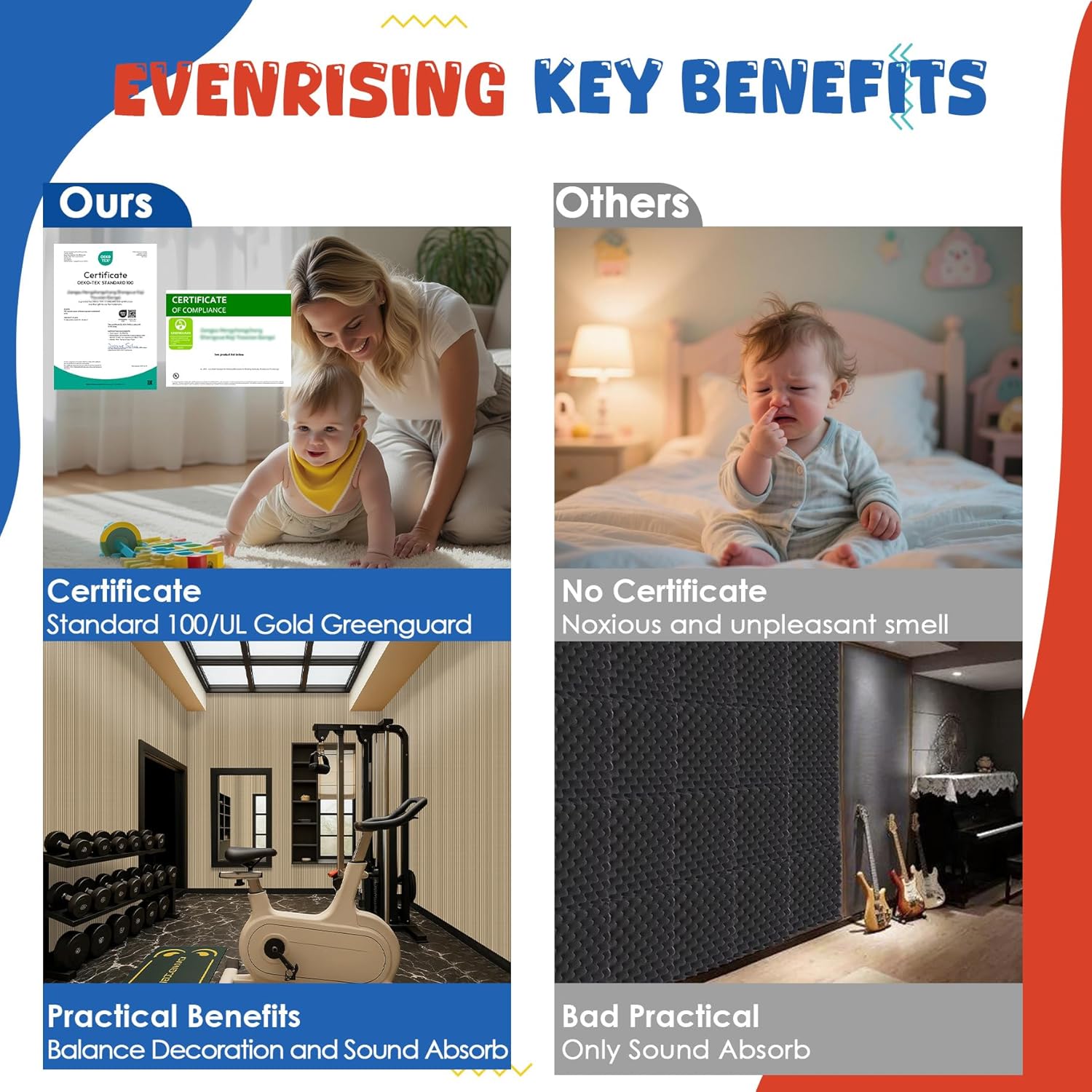 - 😟【WIDELY USE】 This large sound absorbing panels can well absorb the echo and noise,Effectively improve your sound environment and quality.such as home studios, gyms, game rooms, computer rooms, video shooting venues, rehearsal rooms, concert halls, recording studios, schools, conference rooms, Home theater, office,and more.