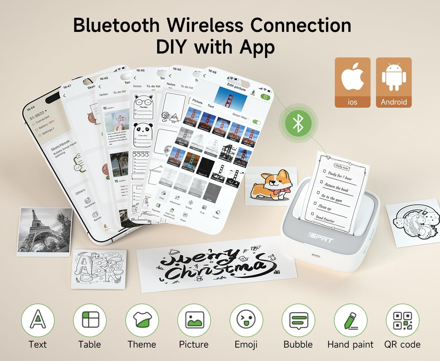 iDPRT Portable Sticker Maker Machine with 1 Roll Sticker Paper, Mini Printer Efficiently and Quickly, Thermal Printer for Study Notes, Pictures, DIY, Label, Free App with Multiple Templates, Grey