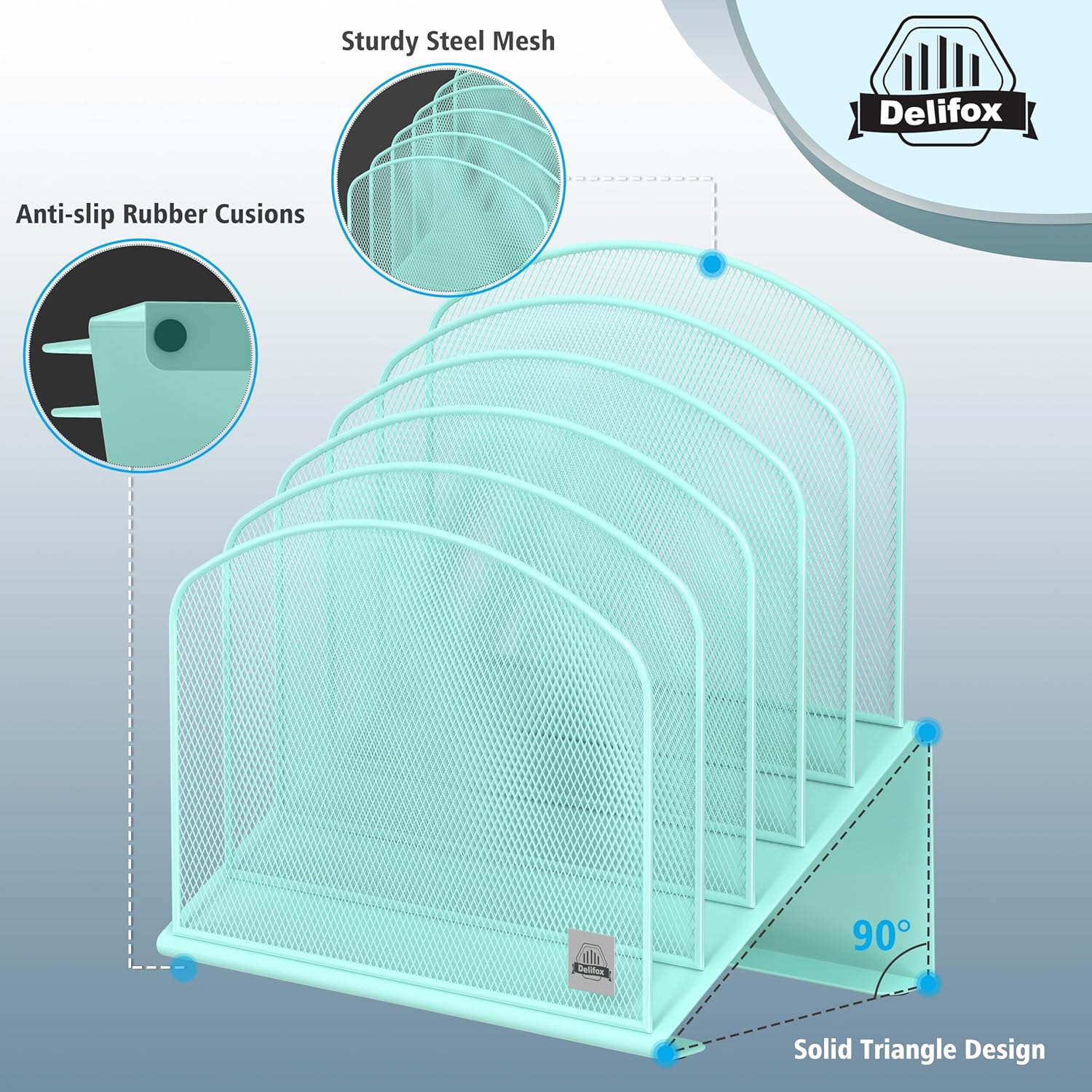 - ▶ SUFFICIENT SPACE FOR STORAGE. Delifox 5-compartment desktop file organizer is large enough to hold and classify many document or papers so as to eliminate worry of document run-off and keep track of files, folders, and other important papers