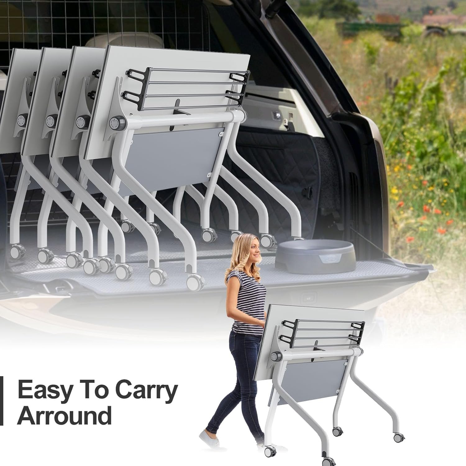 Conference Table,Folding Conference Tables Modern White Conference Room Table with Wheels, 2-10 Persons,for Office, Meeting Room (6, 1606YH, 47IN)