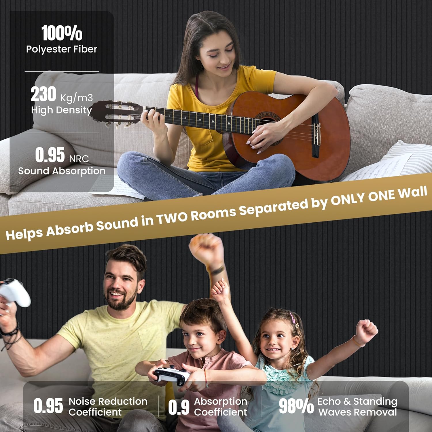 - 100% Polyester Fiber - The wall soundproofing panels is carefully made of 100% polyester fiber. Polyester fiber large acoustic panels have many advantages, such as excellent sound absorption, effective resistance to moisture and mildew, easy to cut,good stability, and has a high cost-effective.