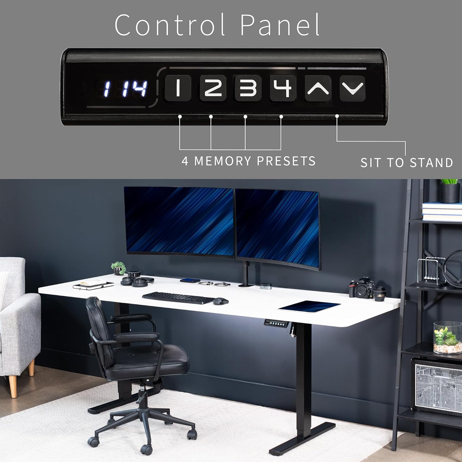 - Memory Controller: The easy-to-use push-button controller features 4 memory presets to save your desired heights. With a simple click of a button, you can say goodbye to long hours of sitting and end the day feeling energized and refreshed