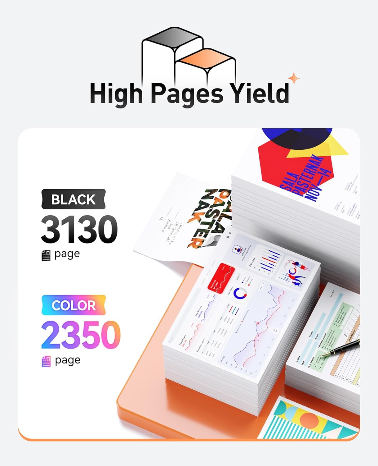 - Yield & Version: 3,130 pages for Black and 2,350 pages Color toner cartridge (A4, 5% Coverage), with High Yield Version 067H.