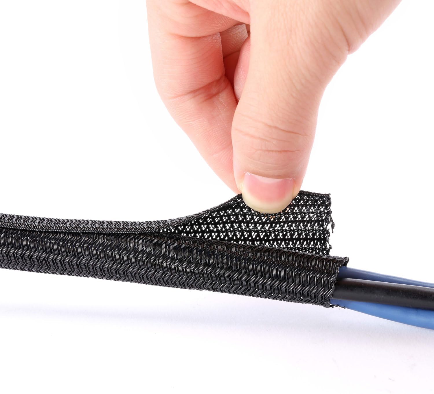 1/4" x 100ft Black Cable Sleeve Protector - Split Wire Loom Tubing for USB/Power/AV Cords, Pet-Proof Chew-Resistant Cover for Cats & Dogs, Flexible Cord Organizer (Black)