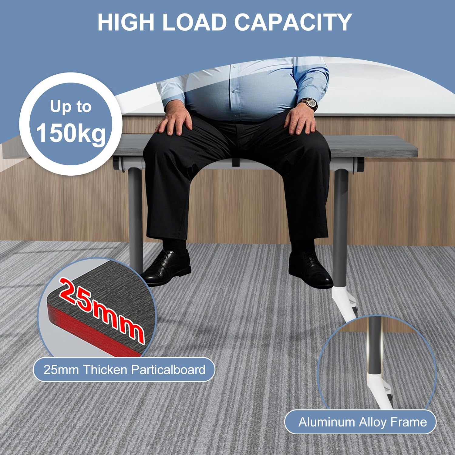 - ăSturdy and DurableăOur conference room table adapts a 25mm thicken particalboard and alumiunum alloy frame which can make sure a strong support. Also, this kind of board is very sturdy, waterproof and resistant to stain and scratch. It make our meeting table easy to clean up. You just need to use damp cloth to clean our desktop of our seminar table.