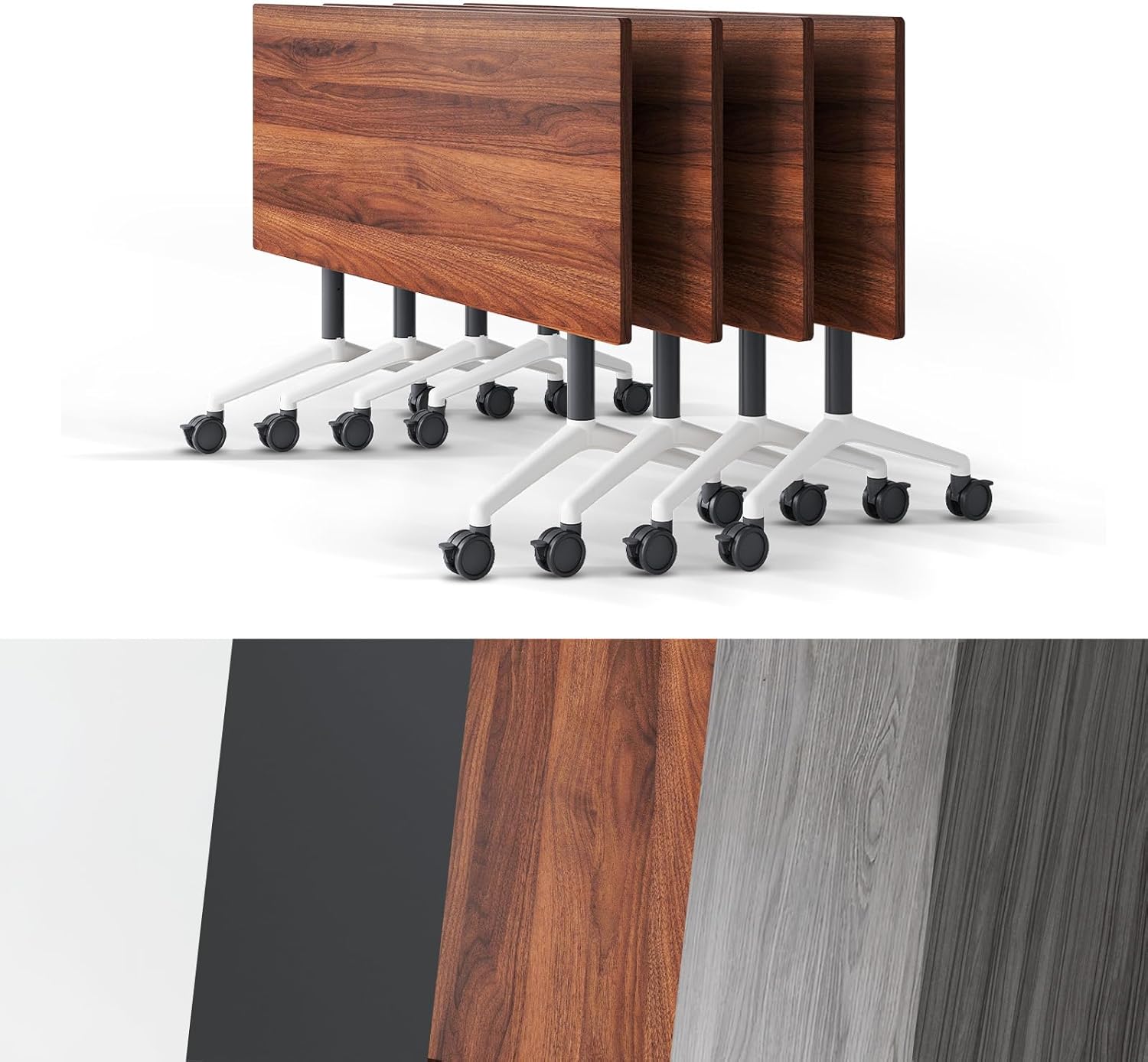 Conference Room Table, Folding Conference Tables,Thicken Grey Tabletop,Flip Top Wooden Seminar Meeting Room Table for Conference Room Offices (4, Walnut, 47.2“)