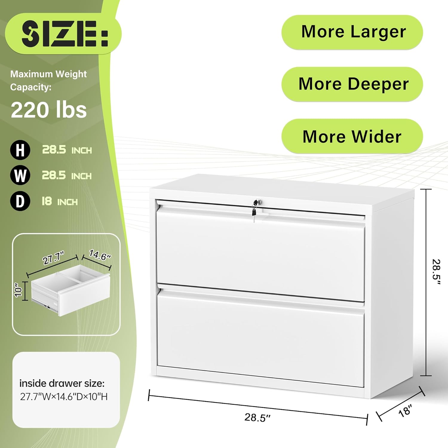 - ăLarge capacity storageă Our file cabinets are designed horizontally to provide ample space for papers and office supplies, with each drawer holding almost 300 letters or A4 sized folders. It is the perfect tool for organizing files, documents, and other office supplies