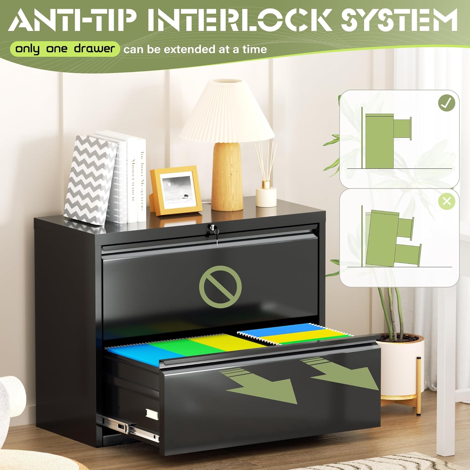 - 【Reliable Locking system】 The office file cabinets are equipped with two keys and an interlocking system that can lock all drawers simultaneously for your daily use and keep your important documents safe even when you are out of the office.