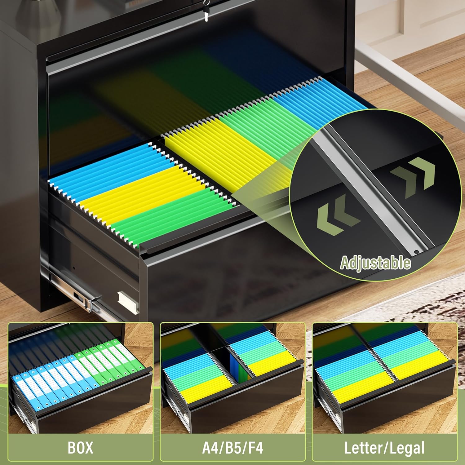 - 【Large capacity storage】 Our file cabinets are designed horizontally to provide ample space for papers and office supplies, with each drawer holding almost 300 letters or A4 sized folders. It is the perfect tool for organizing files, documents, and other office supplies