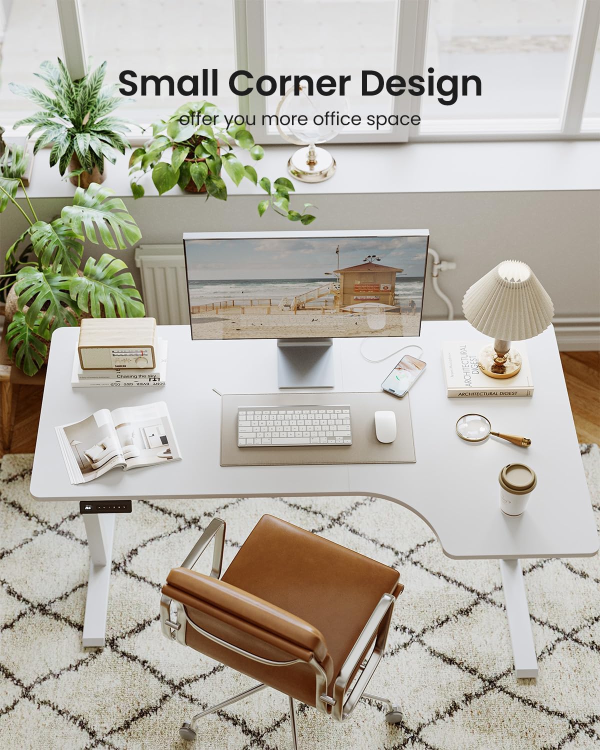 FEZIBO 55×32 inch L Shaped Electric Corner Standing Desk, 4 Memory Height Settings,Home Office & Computer Height Adjustable Table, Ergonomic Sit and Stand Up Workstation with Splice Board,White Top